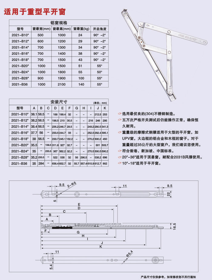 适用于重型平开窗-参数介绍