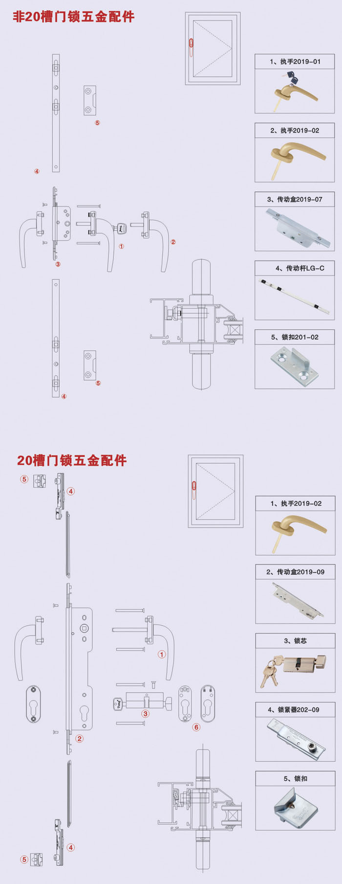 非20槽外平开两点锁系列(直收式)